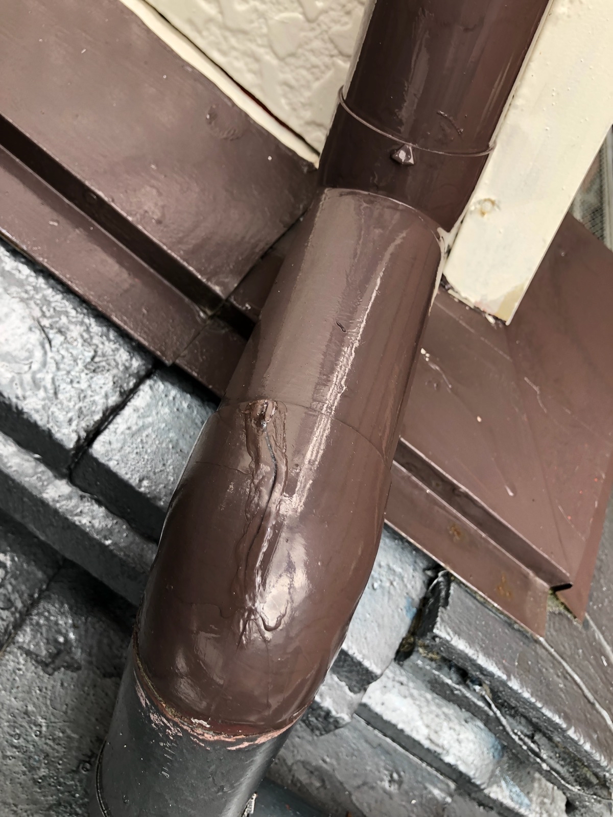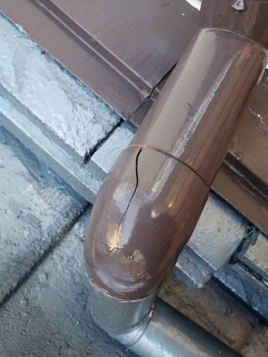 雨樋のL字配管(エルボと言います)に割れがありました。