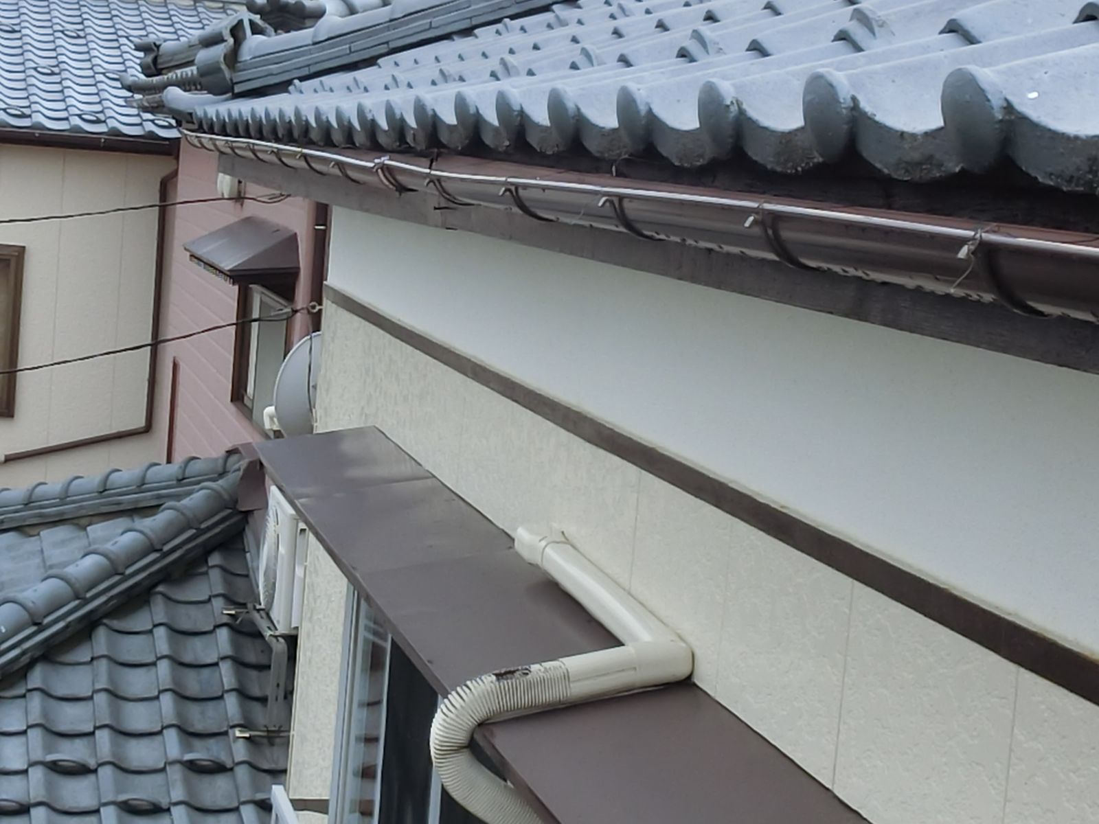 雨樋の破損個所です。雨樋の途中部分から外れているのがわかりますね。