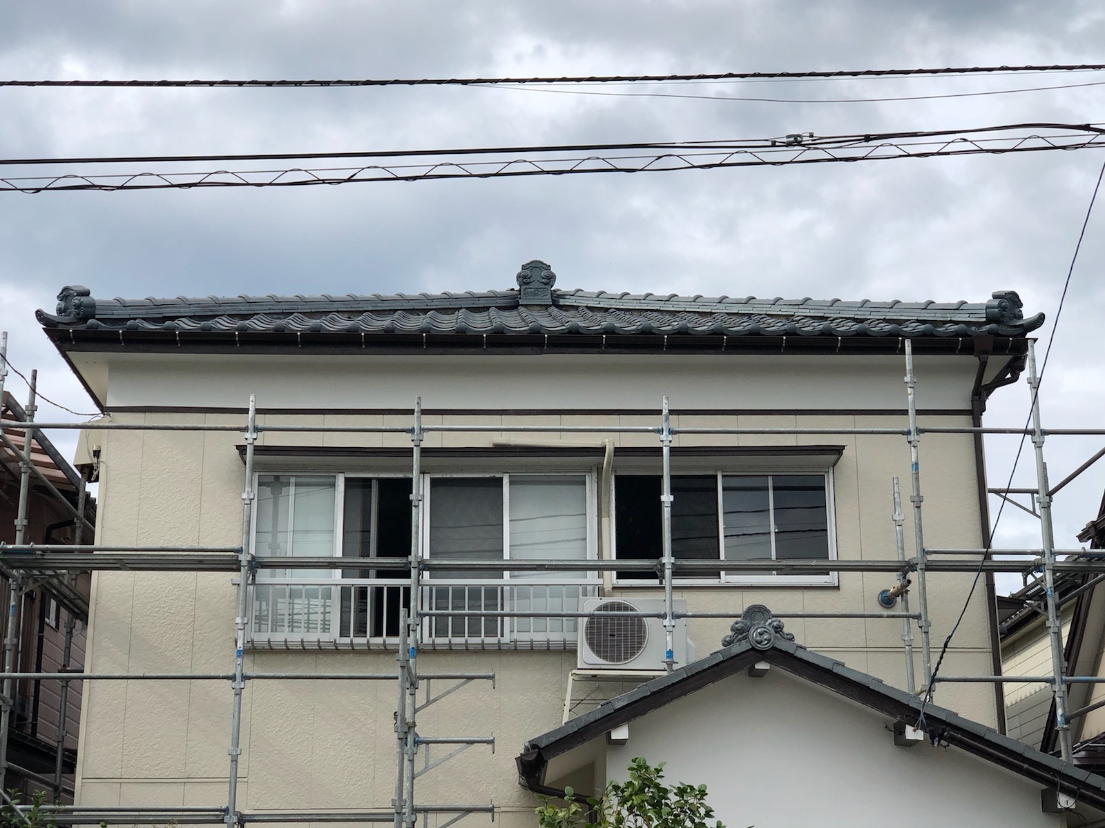 足場を組み立てて作業スタートです。