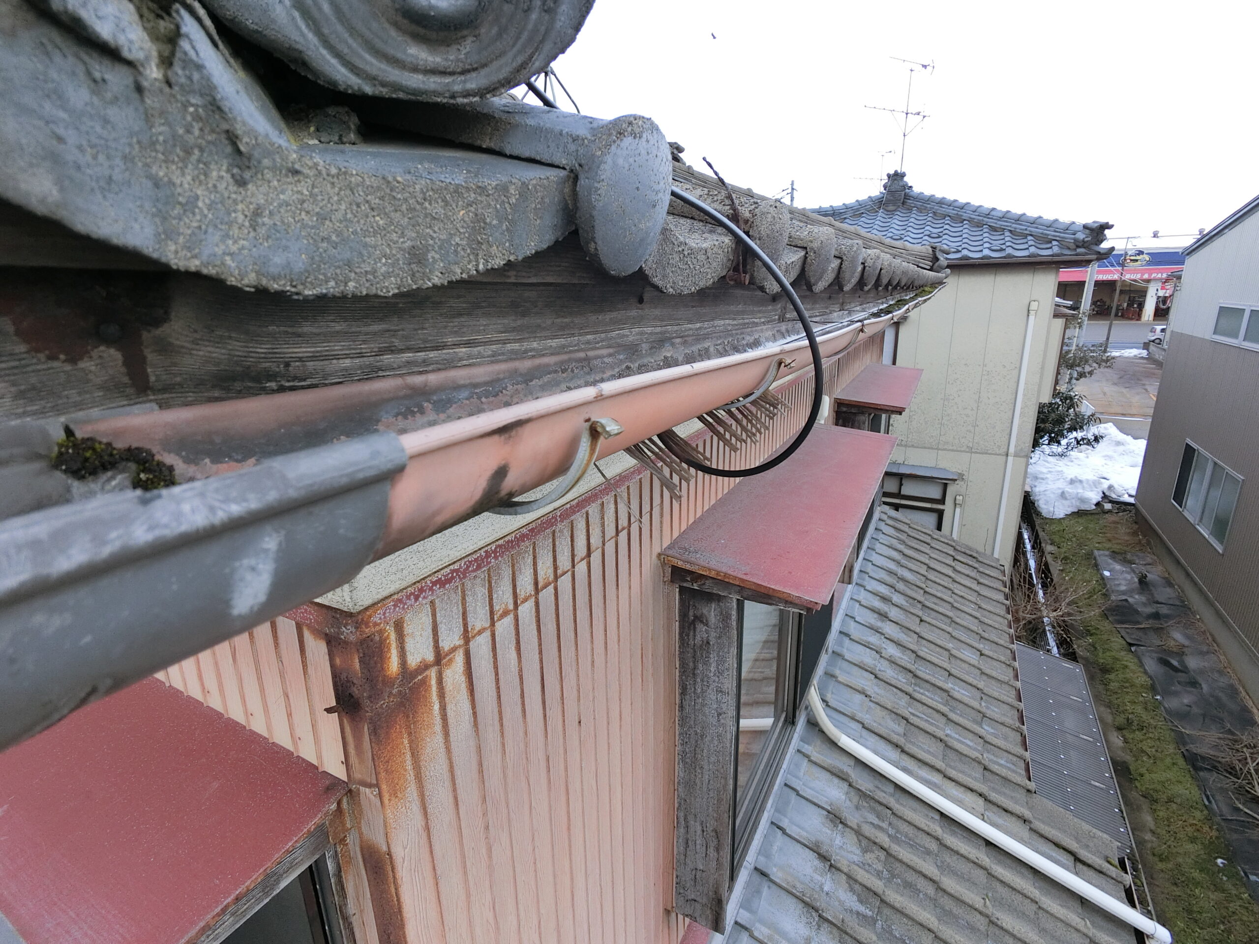 新潟市東区上木戸 M様邸:雨樋工事(改修工事)2025.09.20 (Sat)BEFOREAFTER施工データ施工地域新潟市東区工事内容雨樋全面改修・軒天上張り工事期間30日間工事完了月2022年4月施工前、施工後写真BEFOREAFTERBEFOREAFTERBEFOREAFTER工事写真レポート現場調査雨樋樋の中に土が詰まっています。軒樋用水路に落ちそうな為、部分撤去。施工中雨樋金具取付破風板にビス留めもして、しっかり金具も取付ました。軒天板張り丁寧に仕上げていきます。施工完了雨樋交換完了軒樋取付にて完了です。霧除けケイカル板を張り、すっかり綺麗になりました。