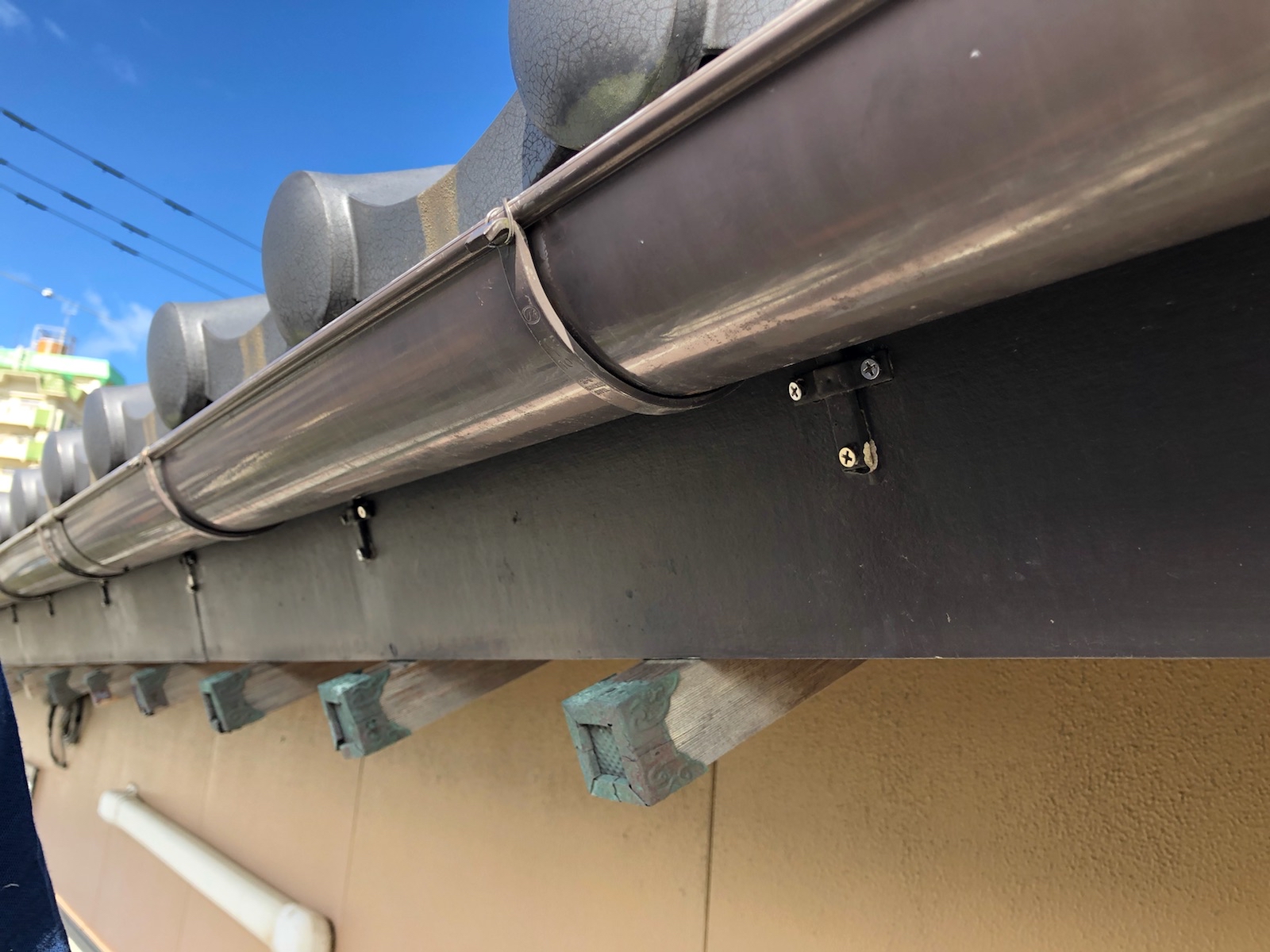 新潟市中央区弥生町 S様邸:雨樋部分修繕2025.10.20 (Mon)BEFOREAFTER施工データ施工地域新潟市中央区工事内容雨樋部分修繕工事工事期間1日工事完了月2021年10月工事写真レポート現場調査今回の現場雨樋補修部分雨樋金具雨樋状況施工中足場組立足場を組み立てて作業開始です。部分補修であるため、それほど大がかりな工事ではありませんが、職人の安全確保のために足場を設置しています。金具交換及び破風板加工作業窯業系の破風板ですが、下地までの空洞があるため軒金具の形で穴が開きかけていました。破風板から下地まで空洞があるため、下地に効くよう長めのステンビスを使いました。穴の開き方がひどい箇所は金具を少しだけずらして止めました。穴が開きかけてた部分はコーキングで埋めておきました。施工完了雨樋部分補修完了雨樋の部分補修が完了しました。施工完了足場を撤去して工事完了となります。工事させていただきありがとうございました。