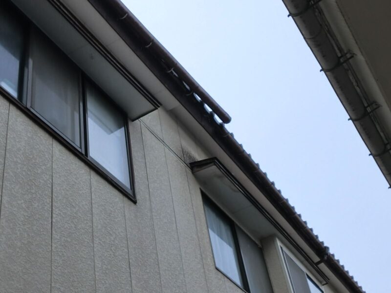 雨樋が破損した状態のままで放置してしまうと、外壁に悪影響を及ぼします。上の写真のように、破損した雨樋から壁を伝わずに雨が垂れ落ちる状態になるのはかなり稀なケースです。