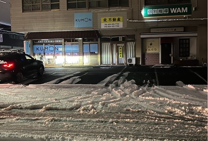 今回の除雪工事は、新潟県東区太平にある公文式太平教室様にて、駐車場入り口前の道路部分を中心に対応しました。